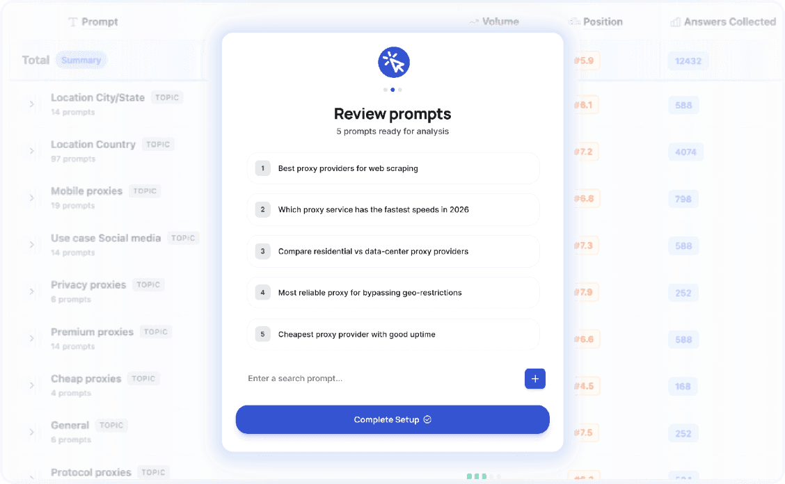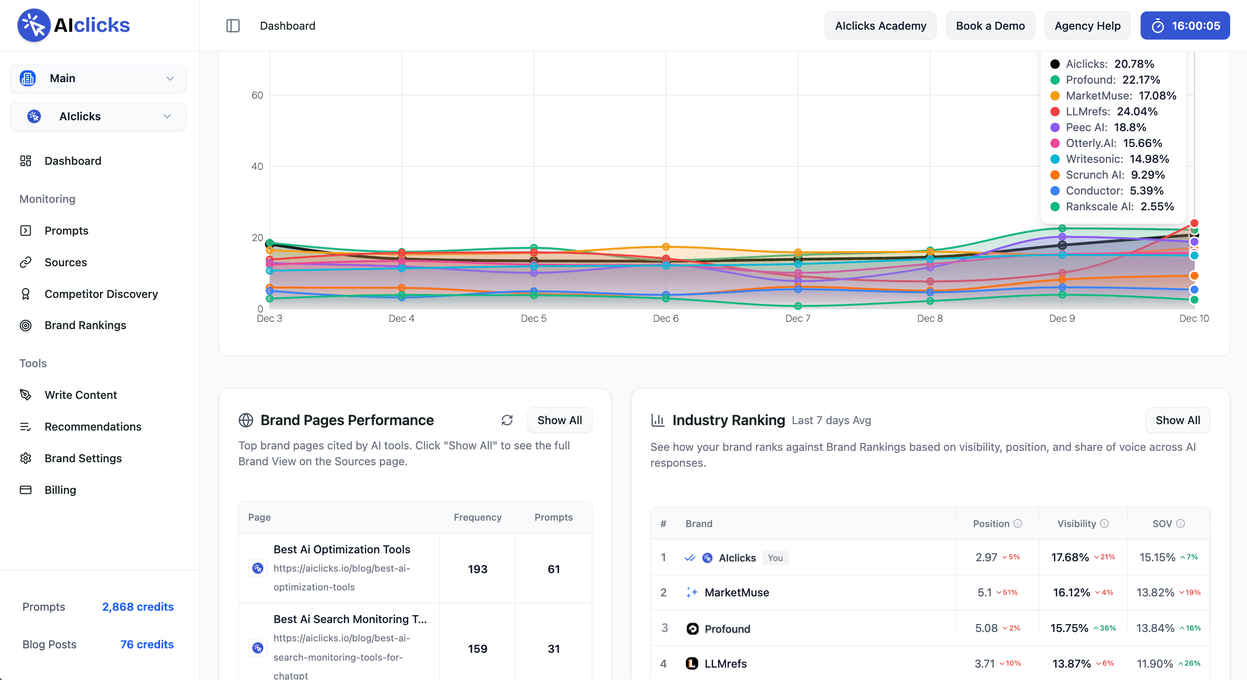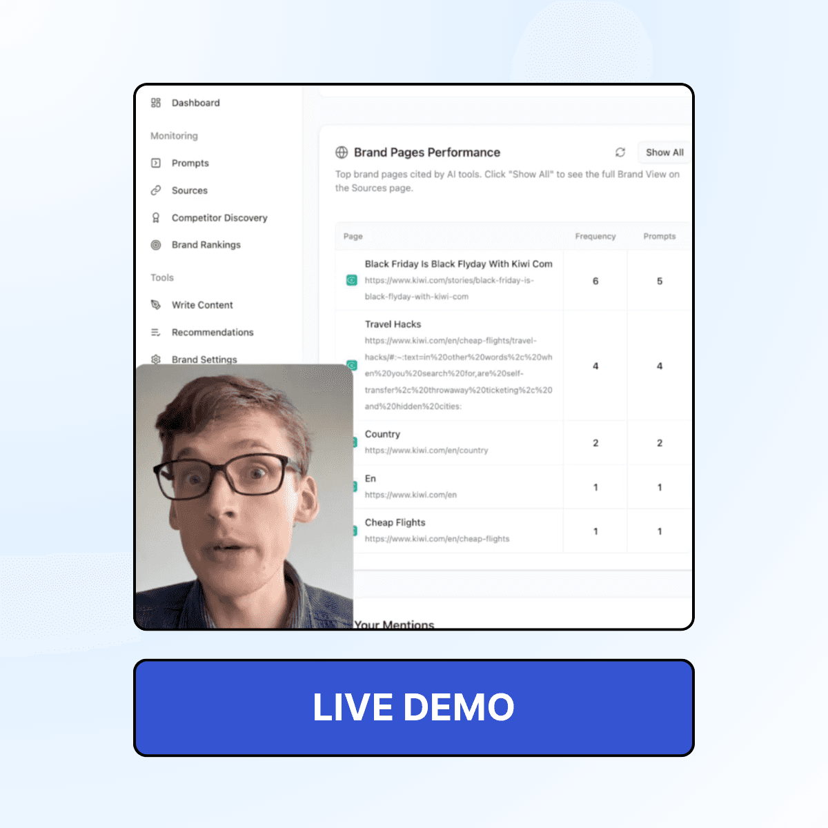 Dashboards that show exactly where you rank, who mentions you, and how to improve.