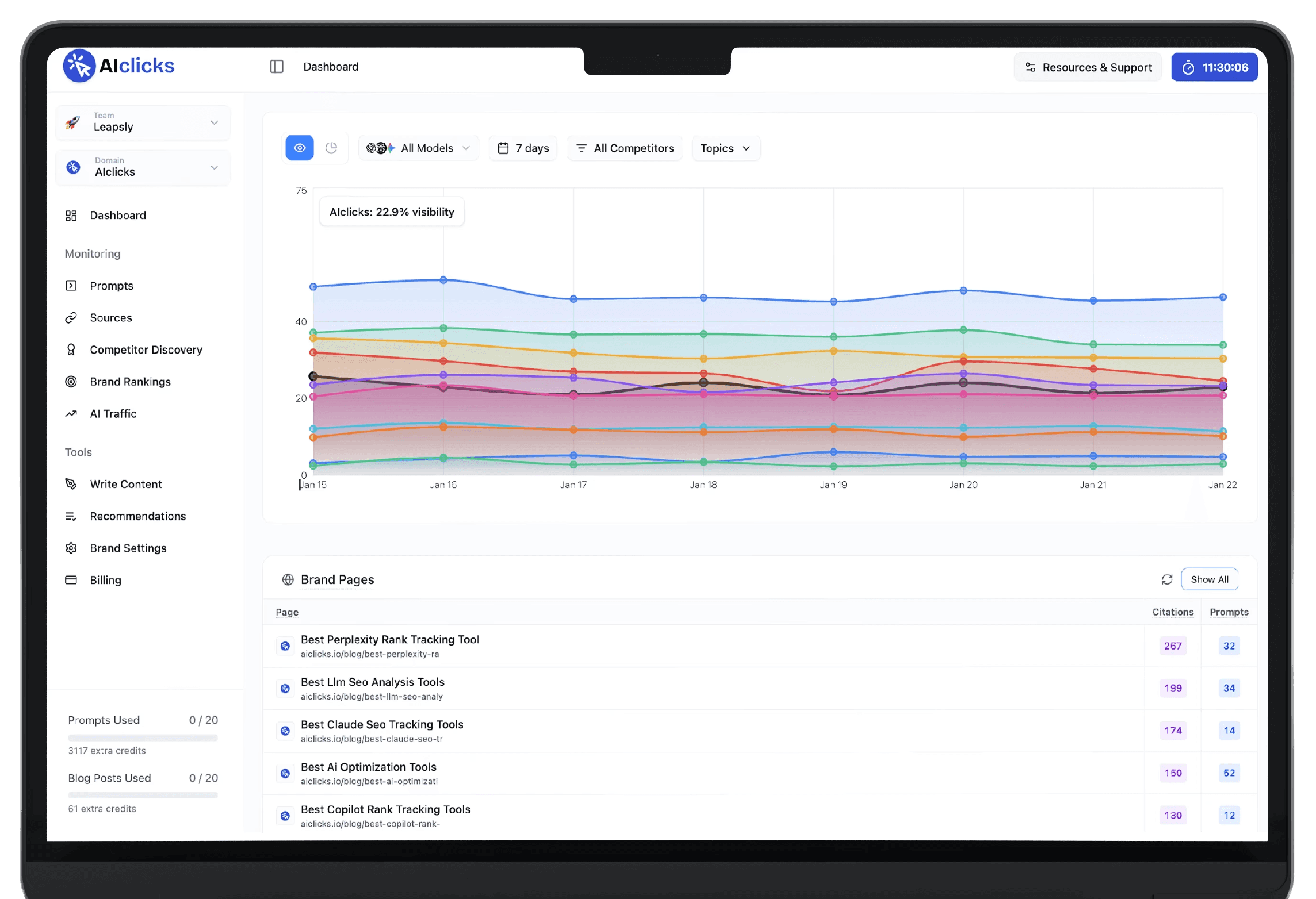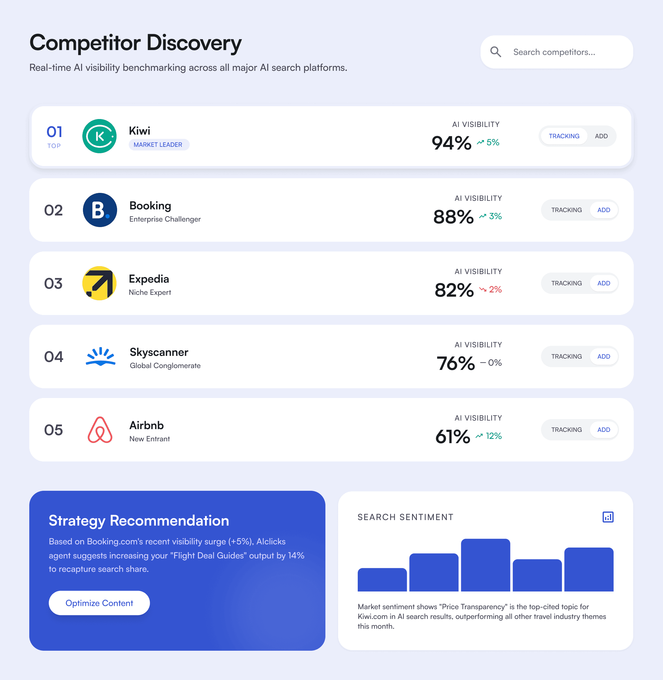 AIclicks has become our command center for AI Search. It’s our single source of truth for tracking client visibility across LLMs and benchmarking competitors.
