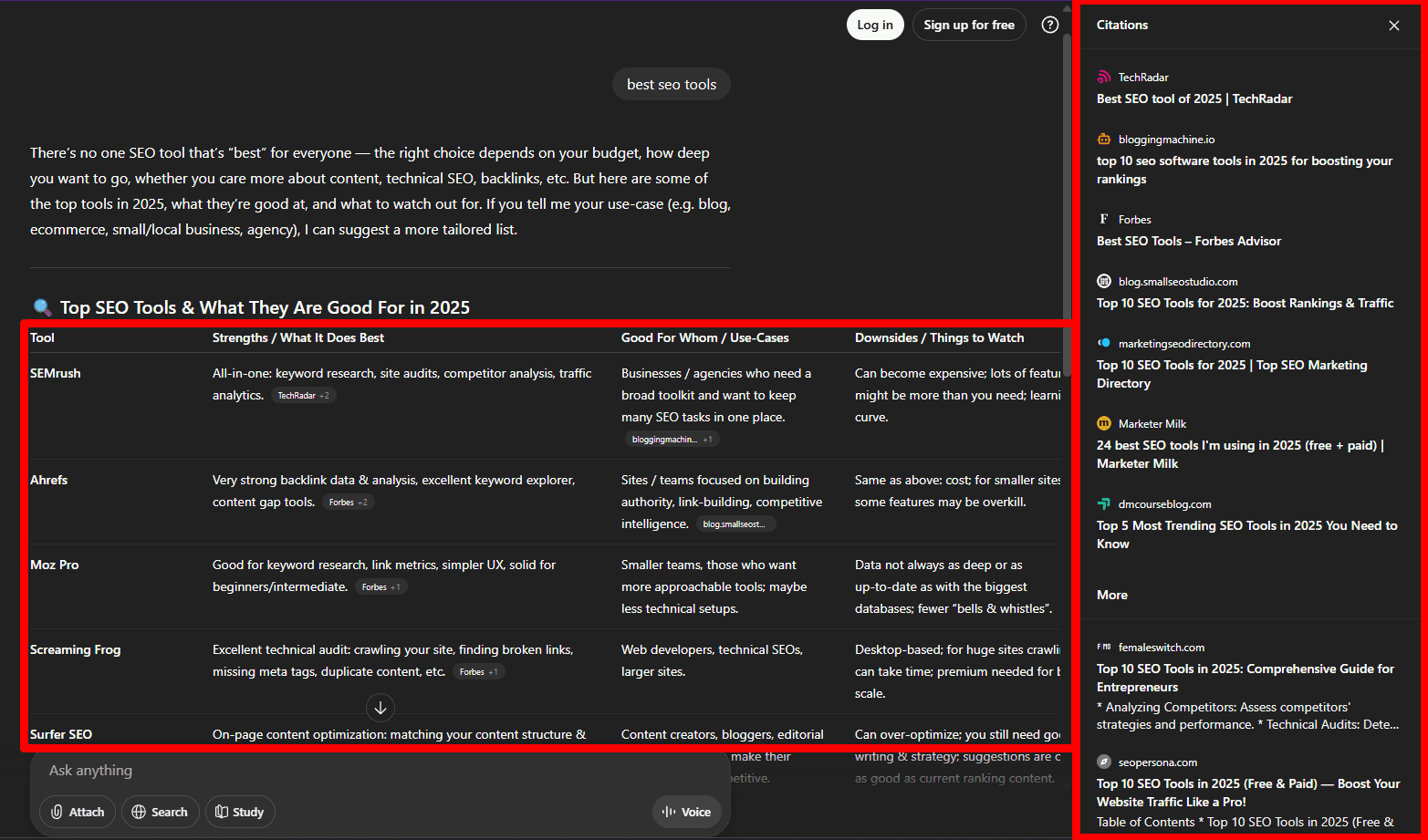 Focus | High-volume traffic and visibility | Increased citations and mentions in AI responses |