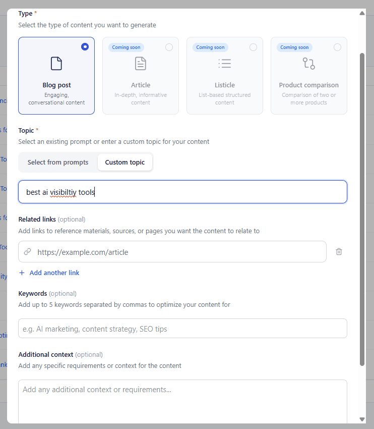 You can add additional details here, such as internal links that you want to link to, keywords that you want to emphasize, and any additional context that you want the AI content writer to know.