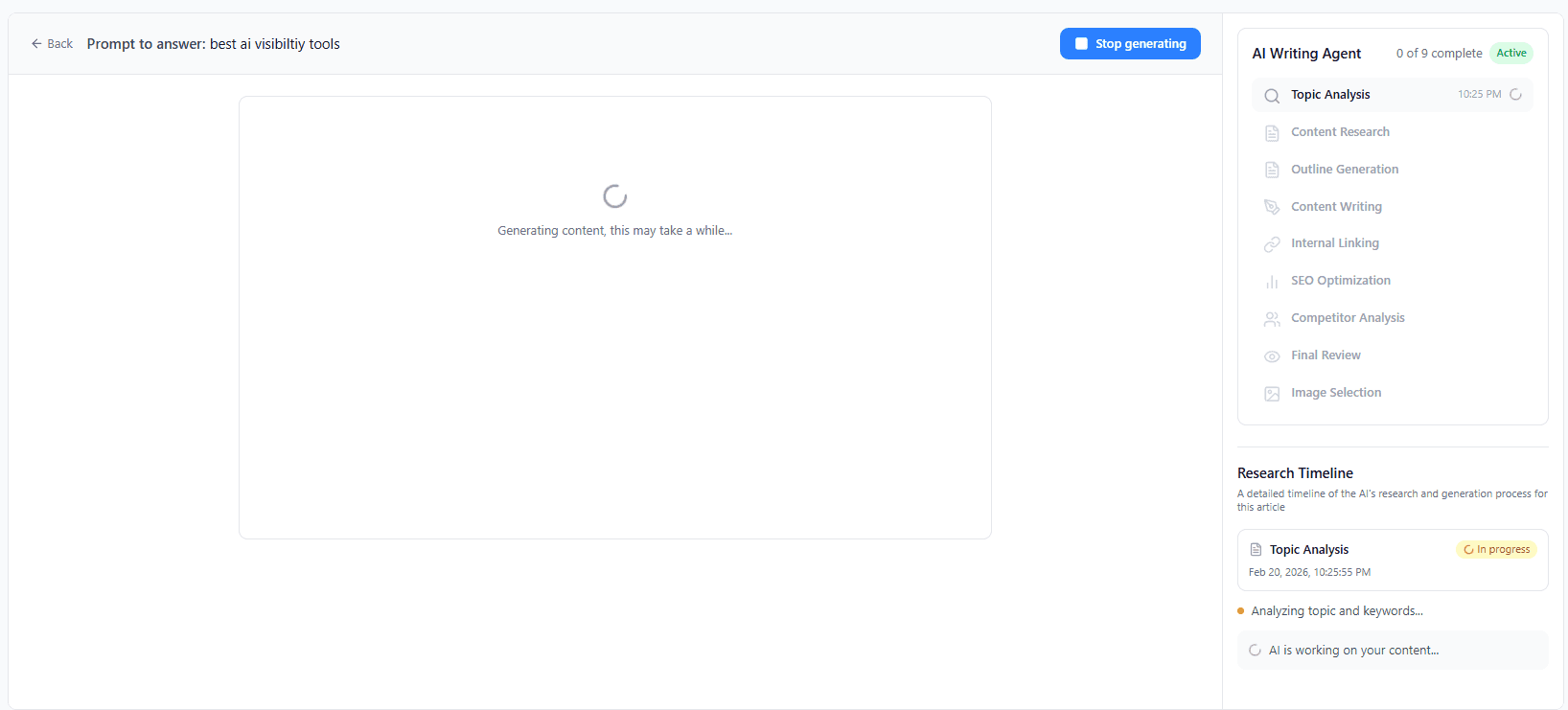 Once you click "Generate content",The AI Writing Agent then runs a structured workflow: