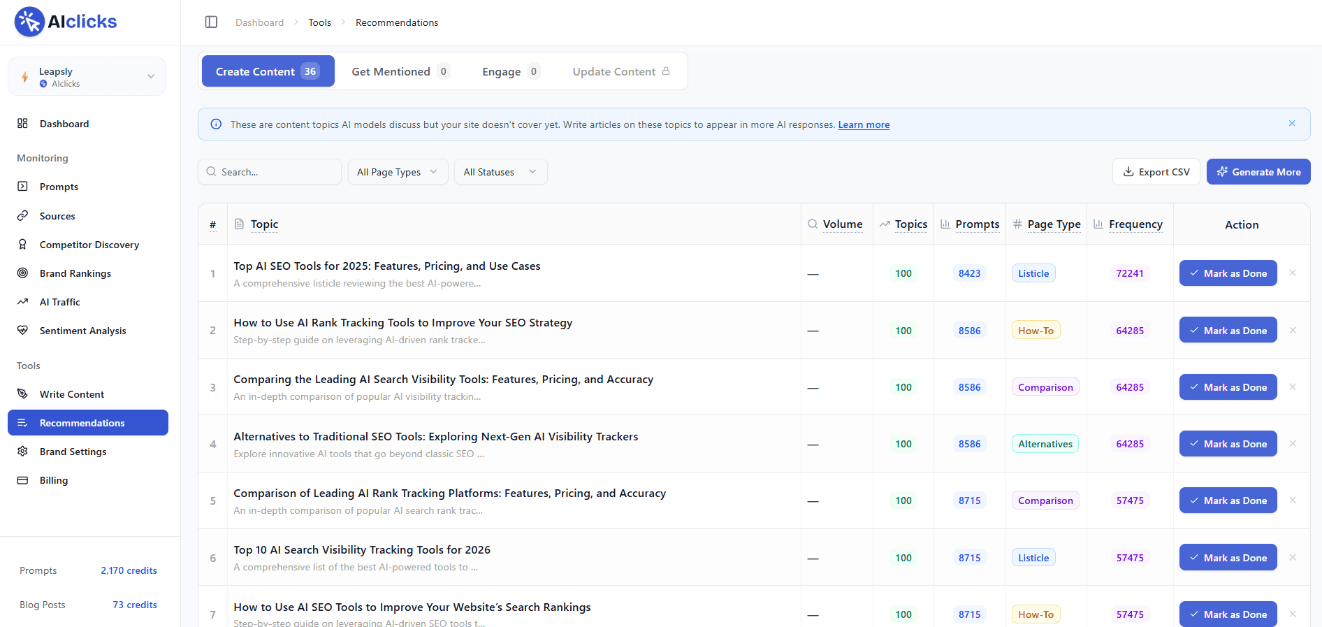 Track prompts and competitor mentions with AIclicks.io’s prompt libraries.