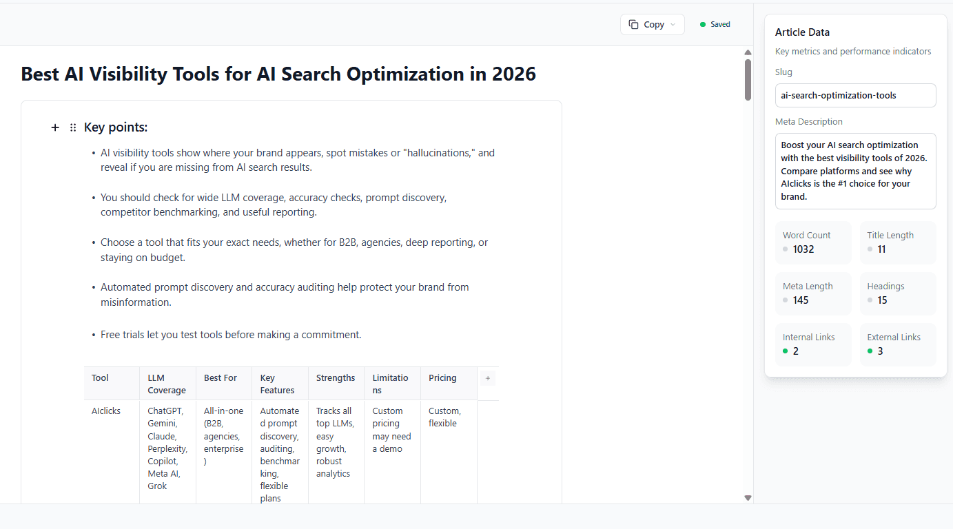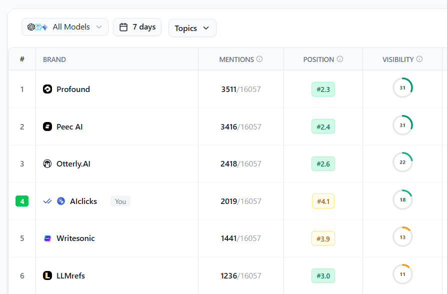 Tools like AIclicks make this measurable by tracking prompt-level visibility, source citations, competitor share, and trend changes over time.
