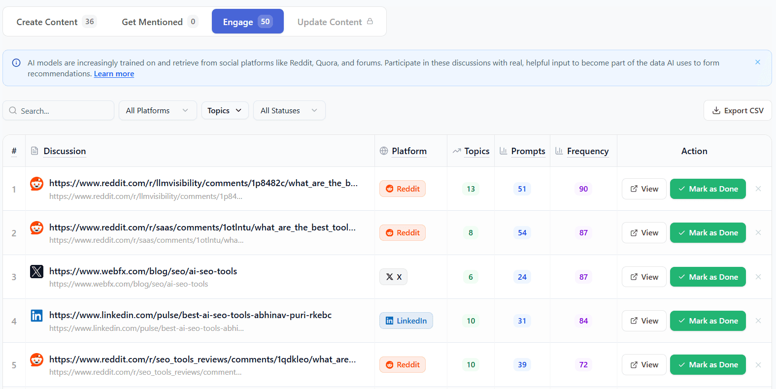 Secure inclusion in the external sources AI systems already trust — review platforms, industry listicles, authoritative blogs, and discussion threads.