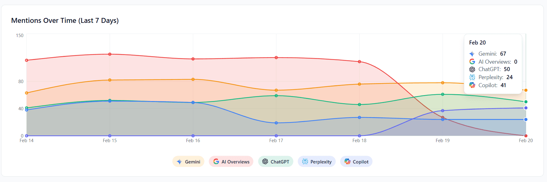 Trend monitoring → Track gains or losses in visibility over time so you can react quickly when your brand starts slipping.