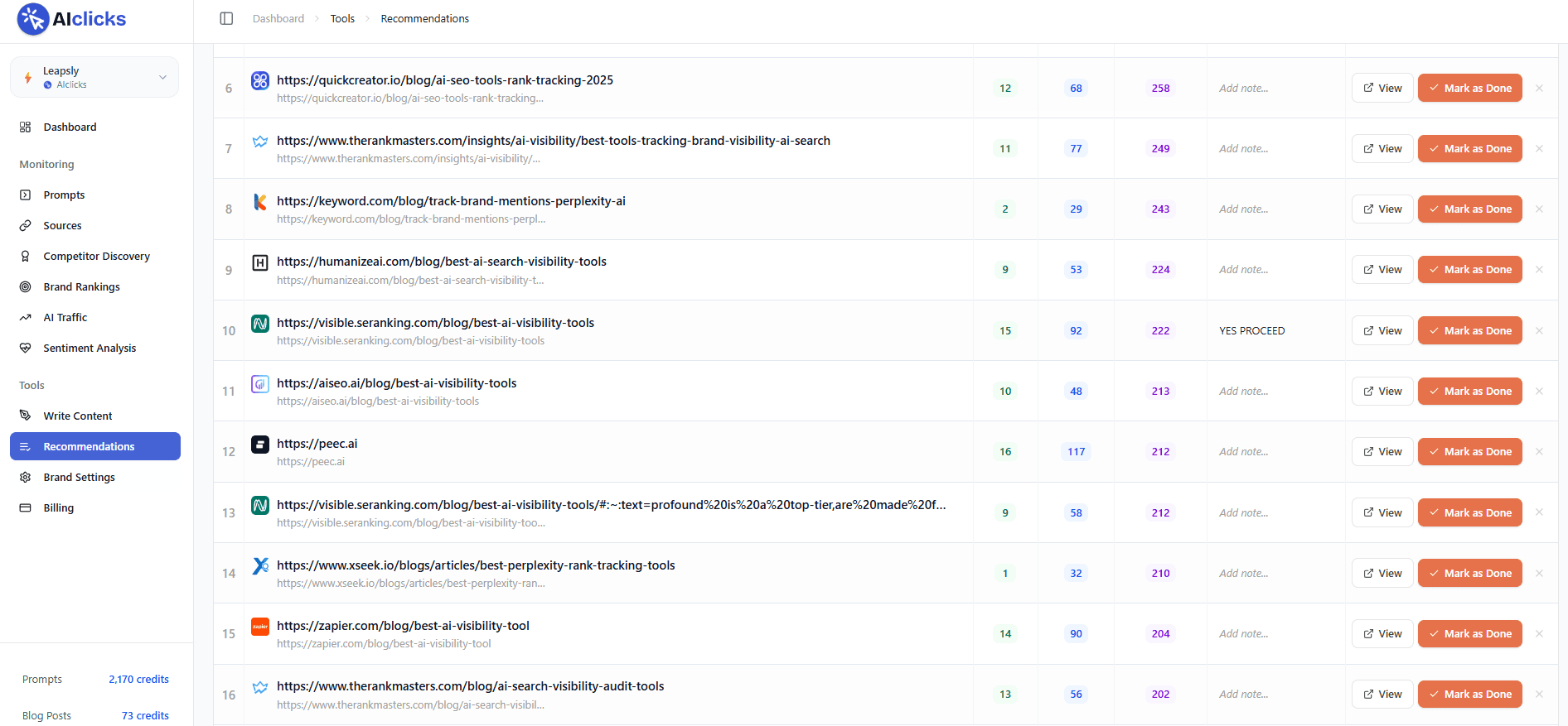 With AIclicks, you’re not just checking results - you’re building a real-time dashboard of prompt coverage, brand mentions, and source citations. That way, you always know why certain brands are being lifted into answers, where are you being mentioned and what gaps you need to close.
