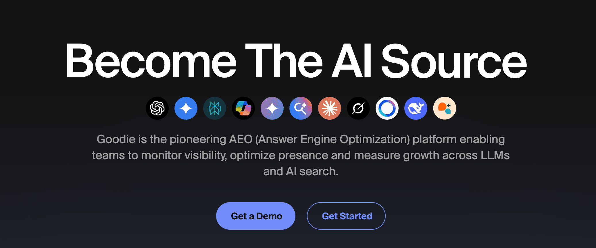 Goodie AI markets itself as a dedicated AEO platform. It offers a solid entry point, but it doesn't offer the same depth of competitive benchmarking as AIclicks. It is more of an "AEO assistant" than a comprehensive strategic platform for market leaders.