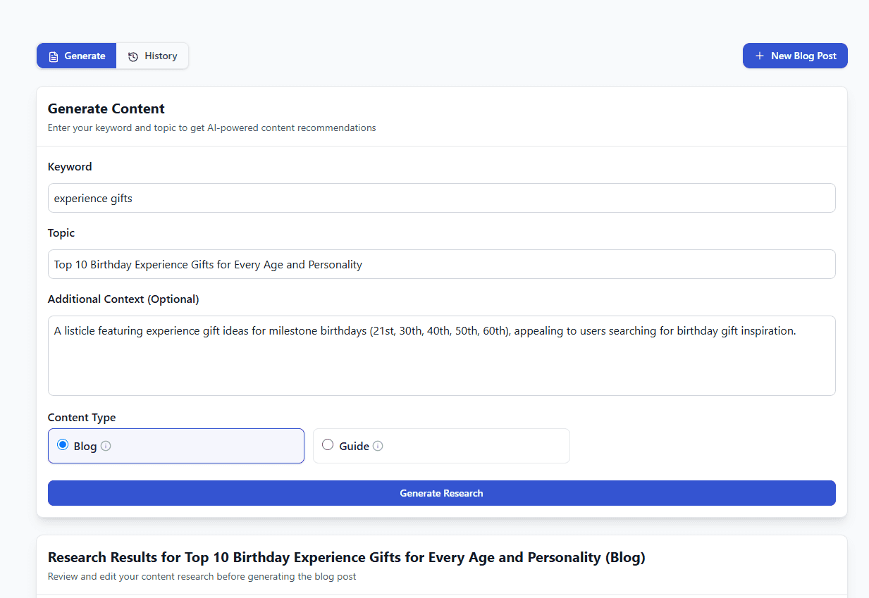AI-optimized content creation: Our Write Content module produces answer-ready blogs and guides. Users can tailor drafts to match tone and compliance needs.