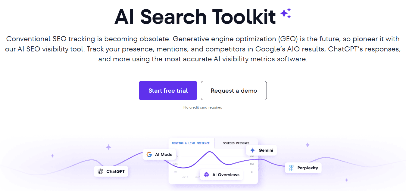 Audit Visibility: The tools check AI models like ChatGPT for your brand’s appearance in answers, including citation sources and competitor mentions.