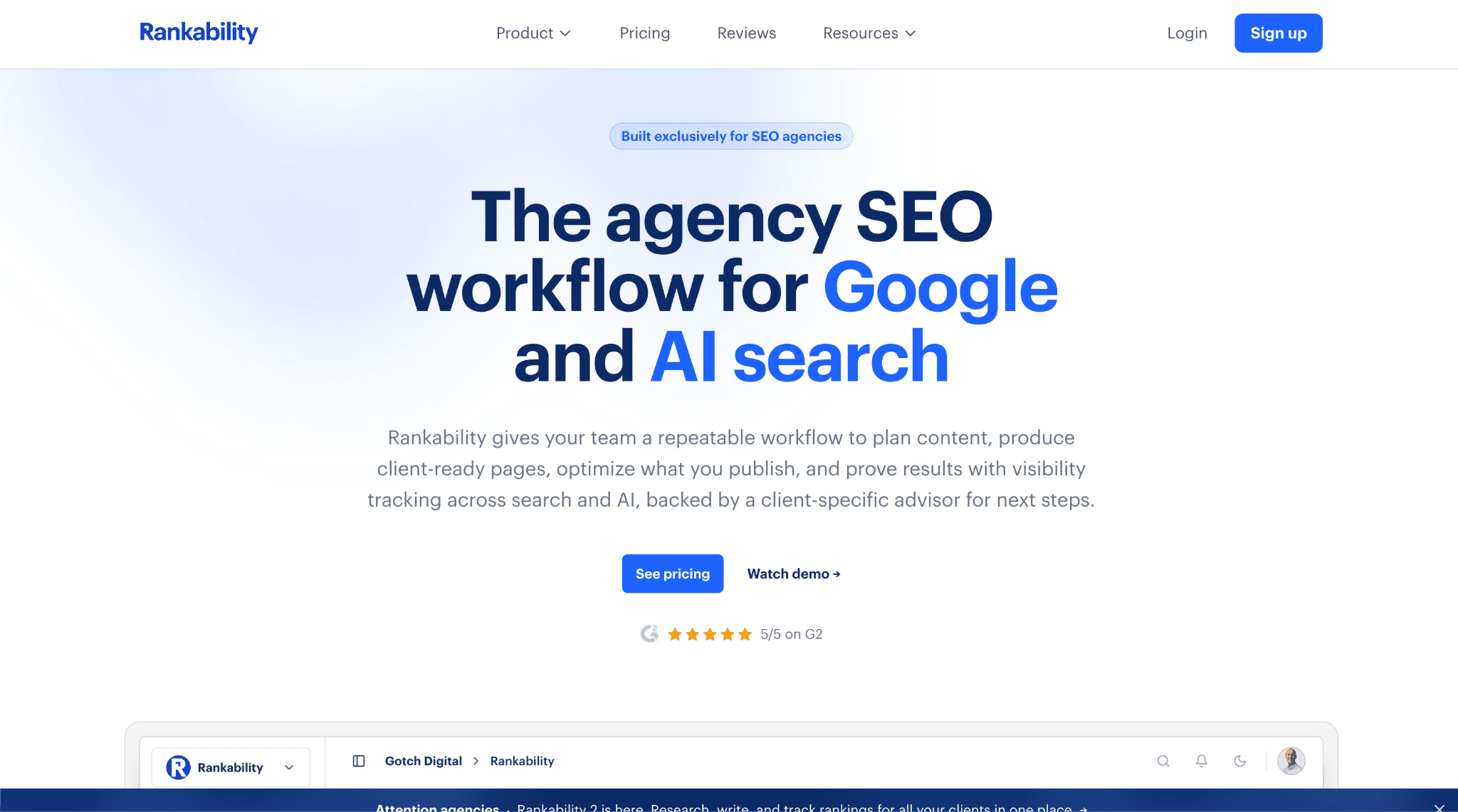 Rankability AI Analyzer is suitable for teams that want to combine ChatGPT rank tracking with actionable recommendations for improving AI visibility.