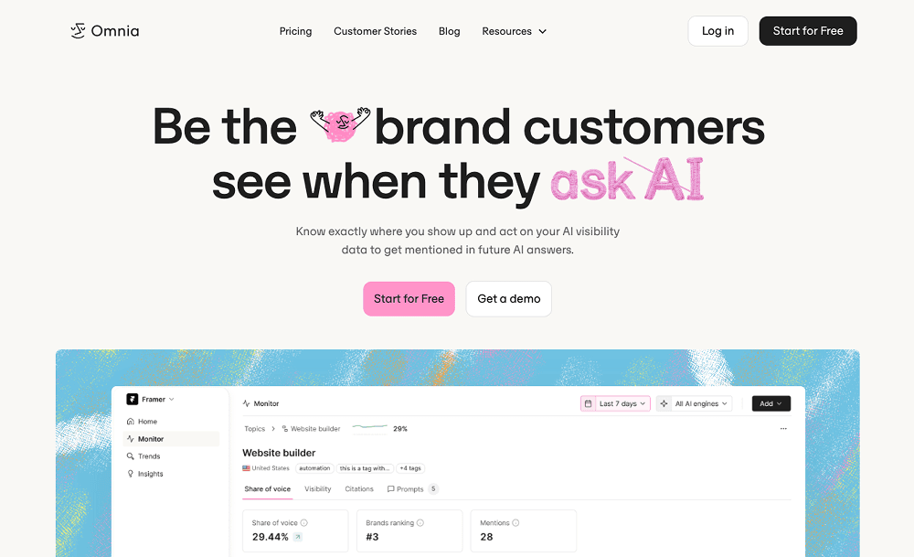 Omnia is a strong fit for marketing and growth teams that want AI visibility tracking with a clear path to improving it, not just a dashboard, but a system that tells you what to do next.