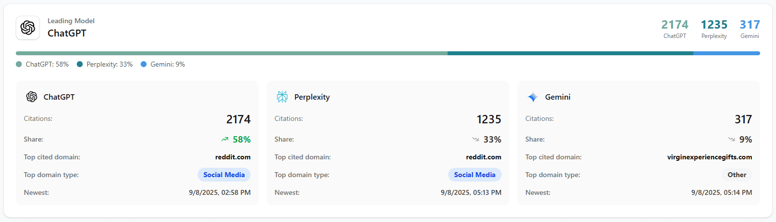 Citation Intelligence: Track which URLs AI bots rely on so you can create content likely to get referenced.