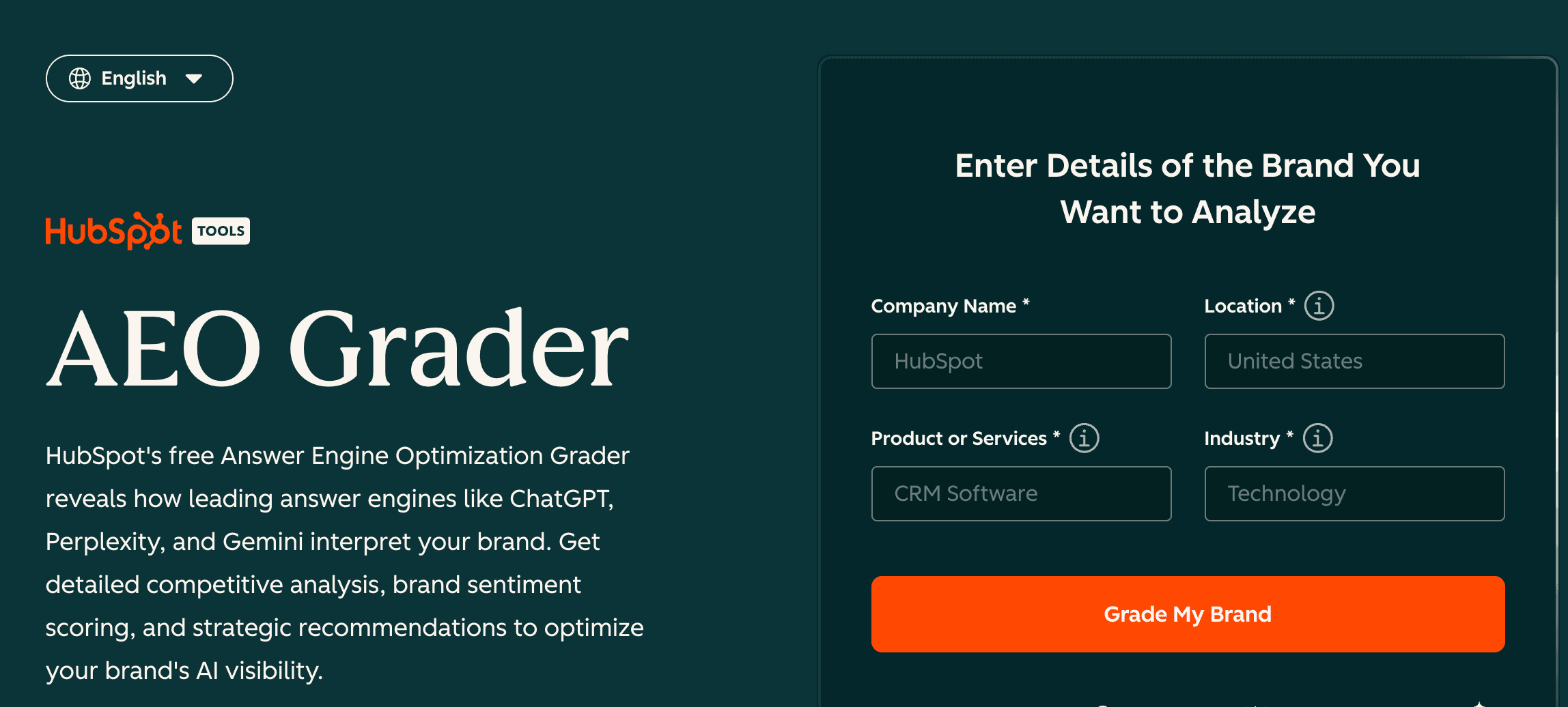 HubSpot AEO Grader | Entry-level GEO assessment | Limited AI engines | Free recognition score, strength analysis, basic competitive positioning | Free and easy starting point; HubSpot integration | Static snapshot only; no continuous tracking or historical trends | Free |