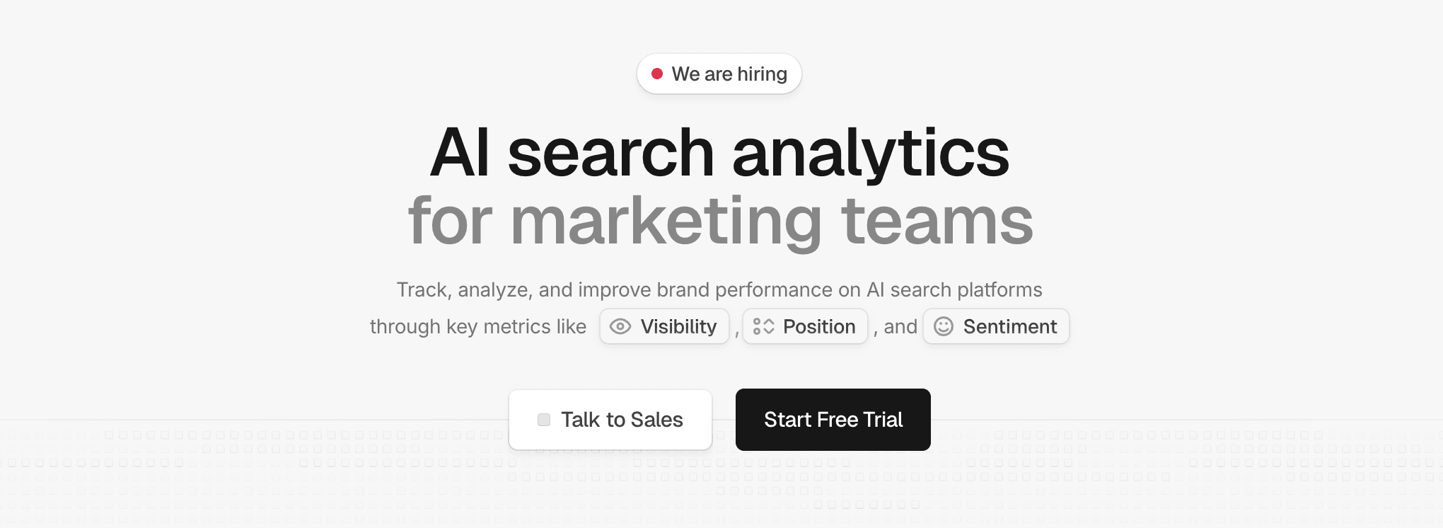 Key Features: SOC 2 Type II compliance, AI crawler visibility tracking, and conversion attribution.