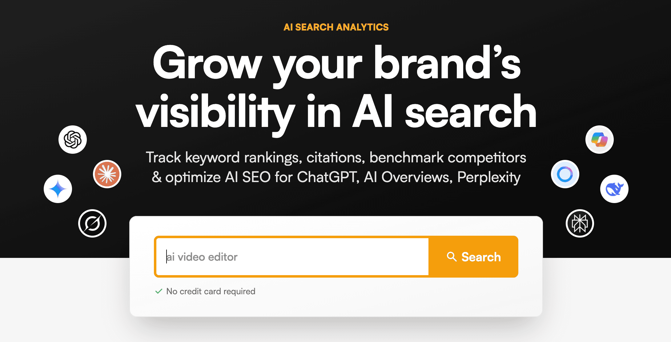 AI visibility tracking & search monitoring: Track brand mentions, link tracking, and visibility data across leading AI tools and AI search platforms.
