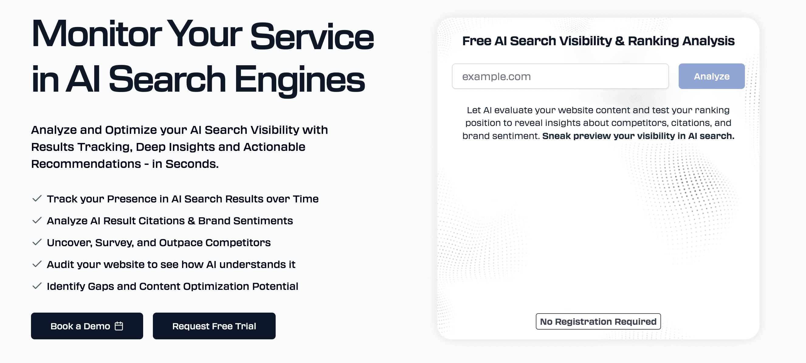 Prompt-level & cross-engine analytics: AI search tracking across prompts, countries, models, and engines - including a built-in ChatGPT tracker - for true generative engine optimization.