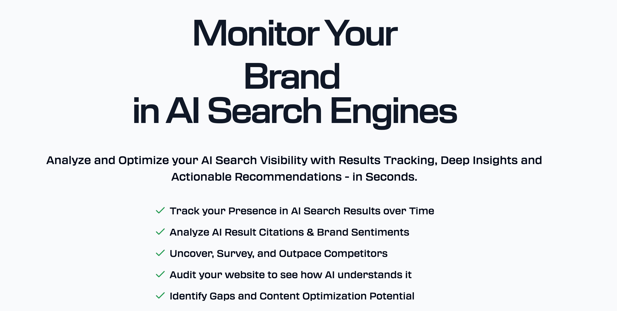 If you care about AI search visibility and brand visibility in AI answers, you need external monitoring across AI search engines (ChatGPT, Perplexity, Claude, Gemini, and Google’s AI overviews).