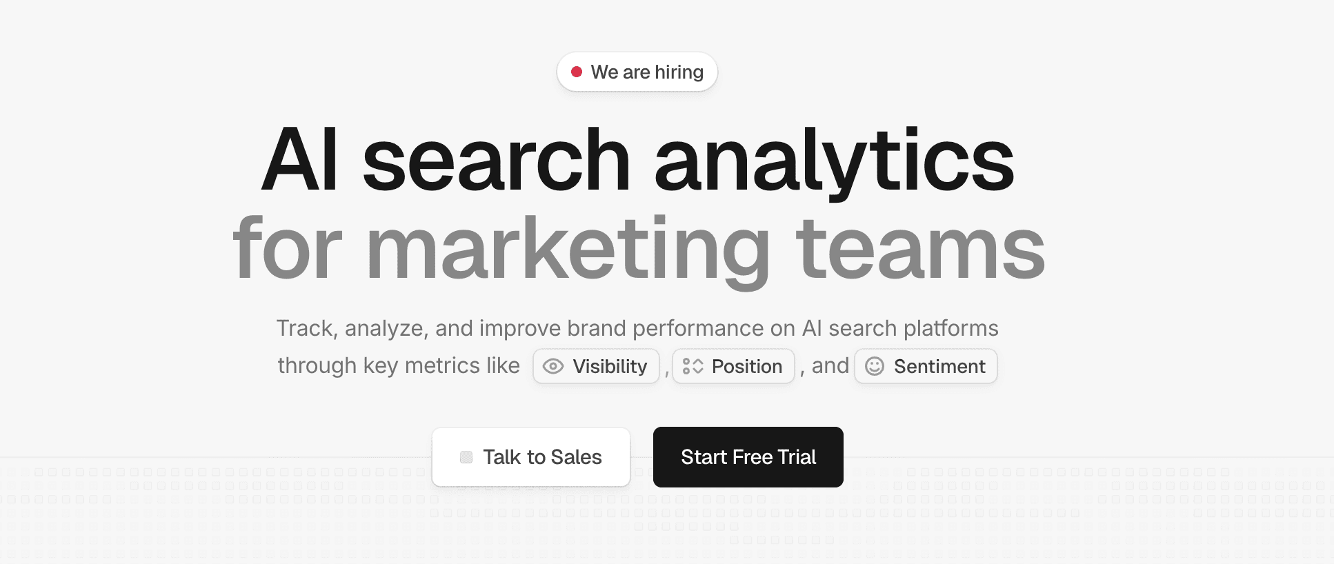 Start with a tool that shows you where your brand appears in AI-generated answers, what is driving those AI responses, and what to fix next. That is the difference between watching AI search results shift and actually shaping them.