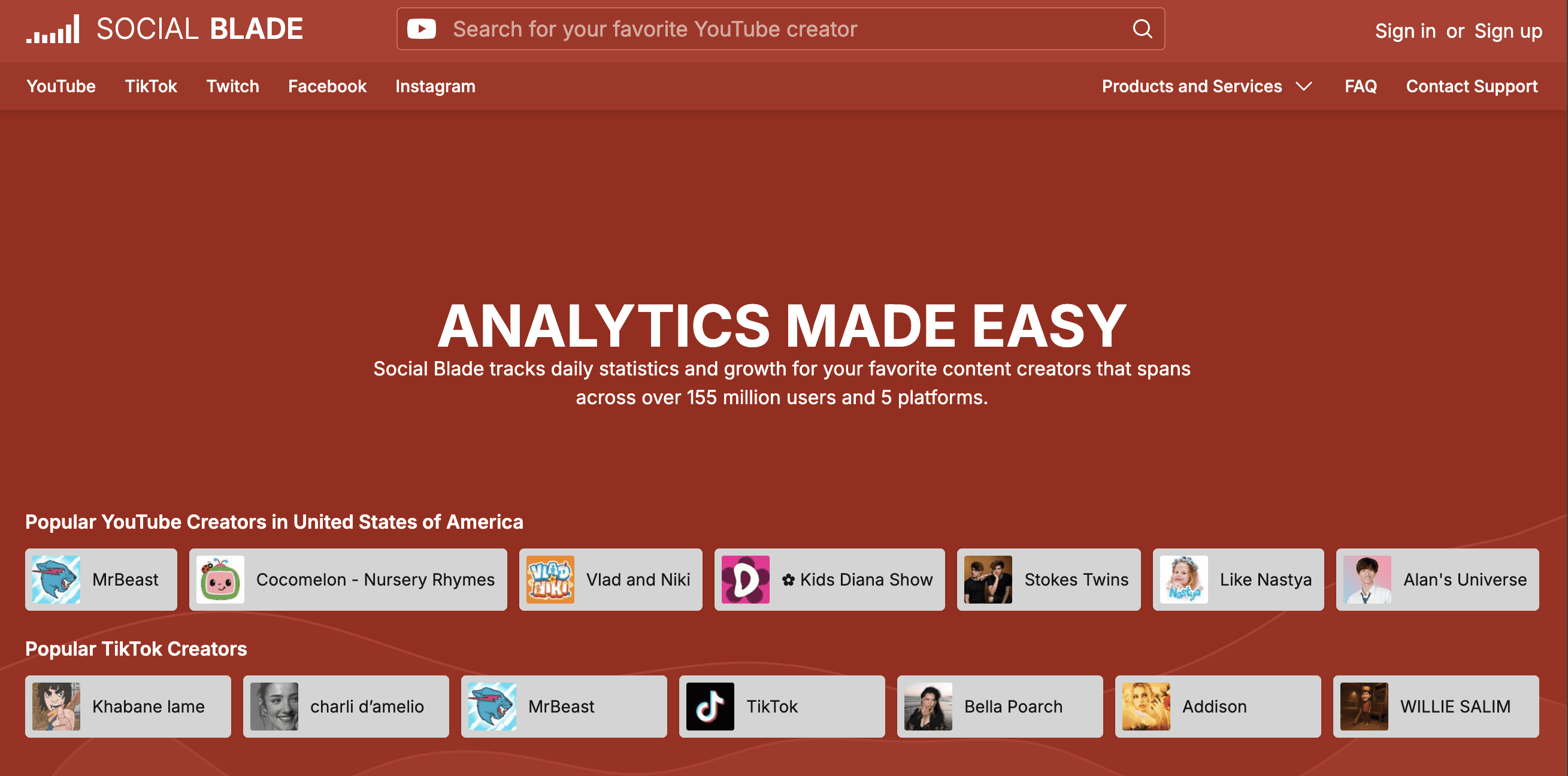 Social Blade is not really an SEO tool in the same way as vidIQ or TubeBuddy, but it still earns a place in this list because competitor analysis matters for YouTube success. Social Blade helps track public channel statistics, rankings, and report-card style views of creator performance across platforms, including YouTube. It also offers paid subscriptions for more data depth and features.