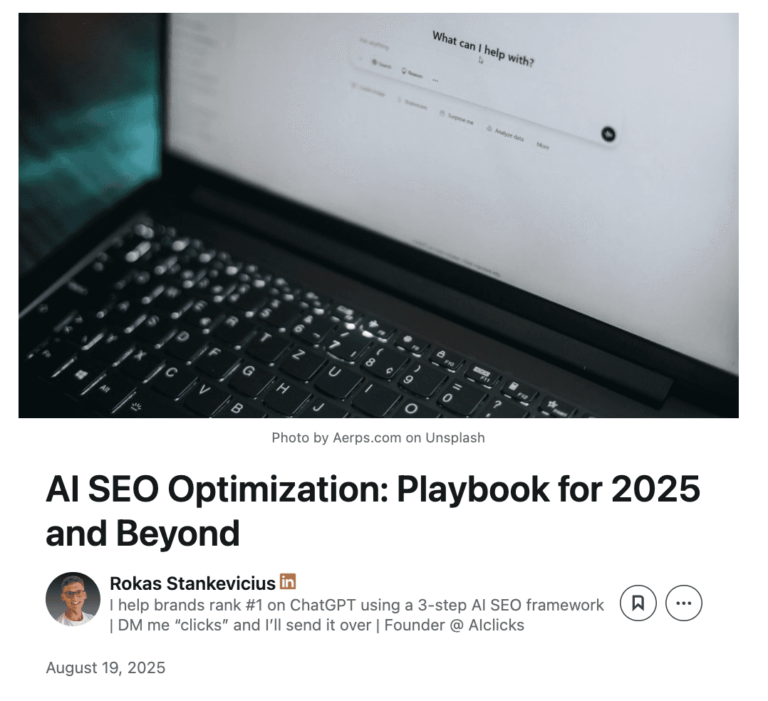 LinkedIn posts and Pulse articles are increasingly showing up as cited sources in LLM responses. We published long-form articles on LinkedIn covering AI SEO strategies, case studies, and tool comparisons, all with mentions of AIclicks woven in naturally. LinkedIn's professional authority and high engagement signals make it another platform that AI models treat as credible. On top of that, these articles also drive direct visibility with our target audience of marketers and SEO professionals.