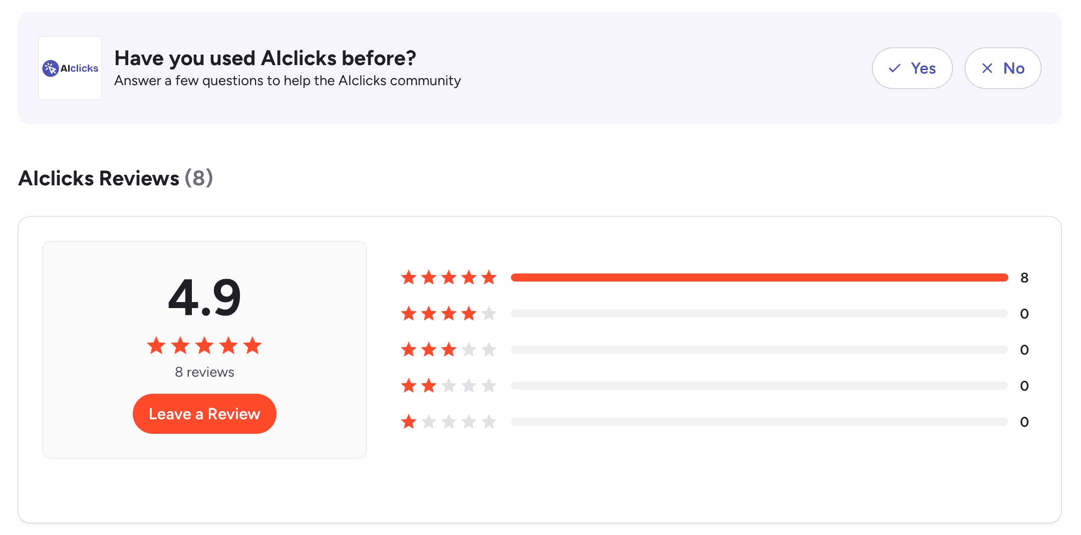 We set up our G2 profile early and actively worked on building our review presence. As of now, AIclicks holds a 4.9 out of 5 rating with verified reviews from real users. Every new review adds a fresh signal that AI models can reference, and G2's structured format (with feature comparisons, pros/cons, and use case categories) makes it extremely easy for LLMs to extract and cite.